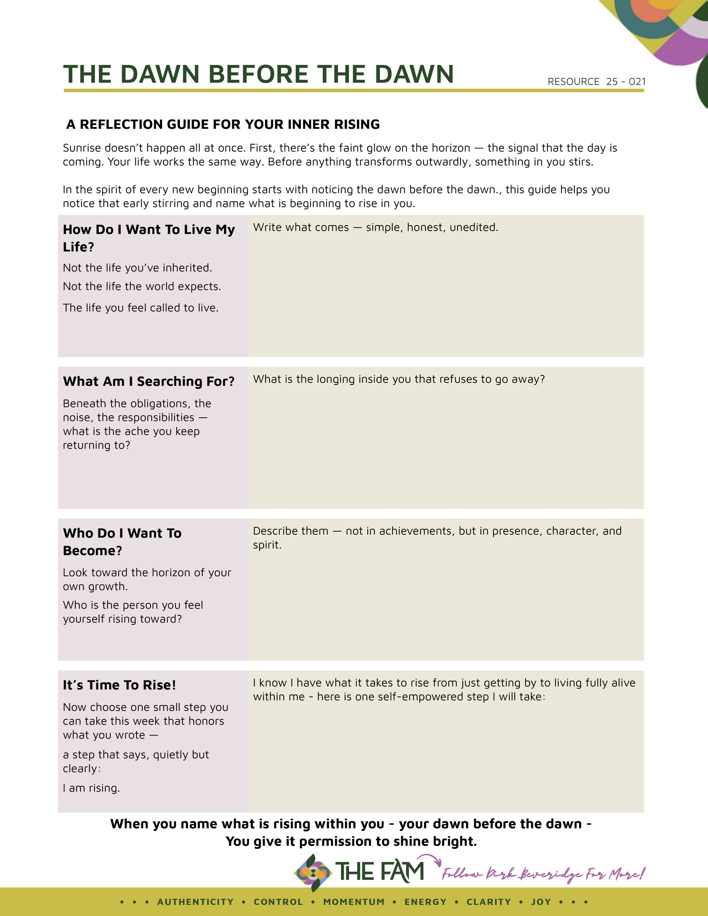 This was not just a sunrise. It was an invitation. A whisper. A summons. The reminder that before there is the day’s work, before there is clarity or conviction or momentum, there is always a first glow—the quiet spark that no one else sees. And if we don’t honor that inner dawn, we miss the opportunity to live the day—and our lives—fully alive.