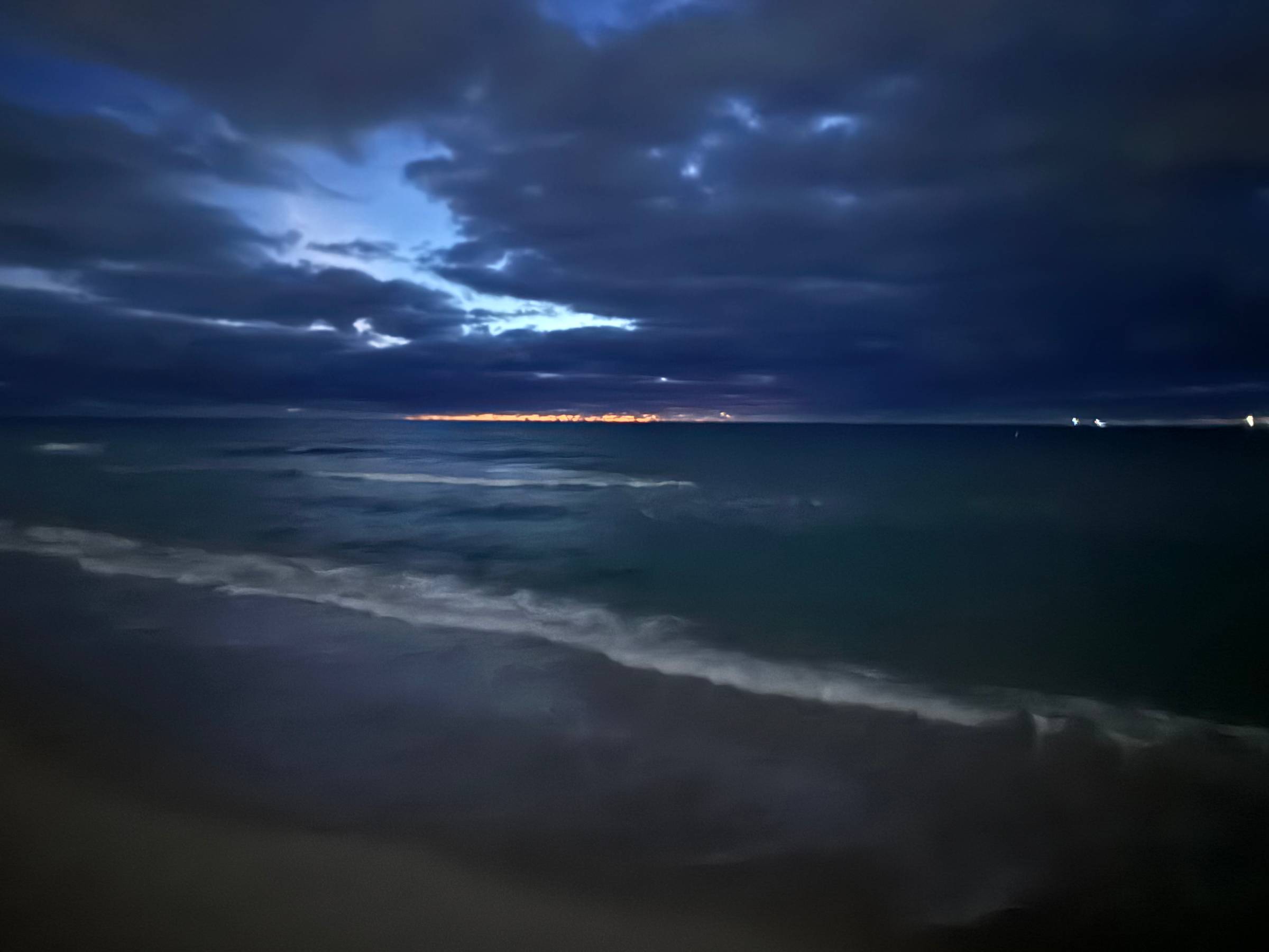 And then, out on the horizon, I saw it—the faintest, thinnest band of orange stretched impossibly wide across the water.